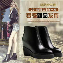 2014秋冬新品欧美加绒马丁靴厚底内增高坡跟短靴女真皮尖头及裸靴