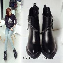 2016秋冬新款欧美厚底短筒马丁靴潮女尖头内增高坡跟短靴女厚棉鞋