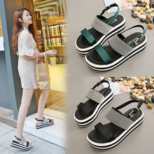 凉鞋2017新款女厚底松糕韩版学生罗马鞋子女夏百搭一字带中跟凉鞋