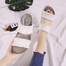 拖鞋女夏2017新款韩版一字拖学生休闲牛仔鱼嘴厚底松糕底女士凉鞋