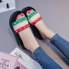 高跟拖鞋女韩版2017夏季新款时尚铆钉一字凉拖外穿松糕厚底女鞋子