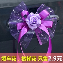 结婚婚车仿真花装饰副车 个性DIY纱网泡沫花婚车副车小花手把花