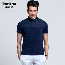 英迈尼2017夏季纯色翻领短袖T恤男 时尚撞色纯棉拼接polo衫上衣潮