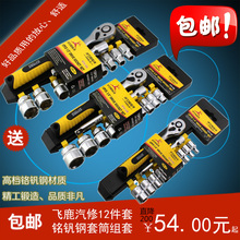 包邮 飞鹿汽修12件套铬钒钢套筒组套 快速棘轮扳手套筒组合套装