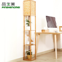 品生美 客厅创意落地灯置物架多功能卧室灯具装饰简约实木储物架