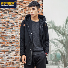 冬季黑色风衣男中长款青年加厚带帽韩版纯棉卡其色连帽学生外套