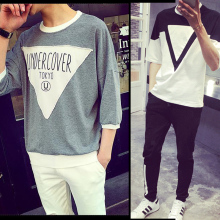 2017韩版个性夏季男士半袖潮流五分中袖宽松七分袖男t恤学生短袖