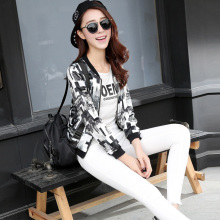 棒球服2016春秋季女式印花开衫外套韩版潮夹克衫短款长袖