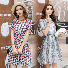 初夏新品碎花雪纺连衣裙女2017夏季新款韩版时尚显瘦中长裙裙子潮
