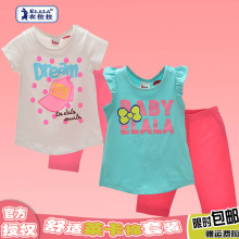 清仓 衣拉拉儿童女童莱卡棉短袖T恤套装 儿童夏装韩版纯棉2件套