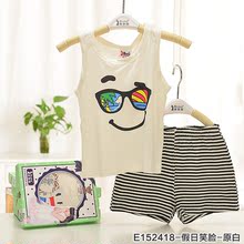 清仓 衣拉拉 夏儿童背心套装莱卡棉韩 男童宝宝睡衣套装家居服