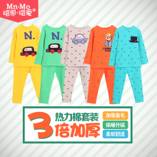 清仓 瑁恩瑁爱 黄金绒儿童保暖内衣套装加绒加厚 男童宝宝内衣睡