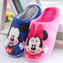 迪士尼棉拖鞋女冬季米奇米妮卡通情侣居家拖鞋保暖毛拖鞋防滑厚底