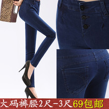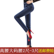 春季新款紧身显瘦大码女装高弹力小脚铅笔裤女长裤高腰牛仔裤