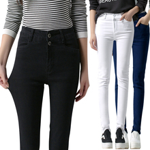 春季大码高腰白色牛仔裤女显瘦胖mm女裤长裤子韩版弹力黑色小脚裤