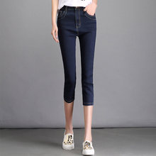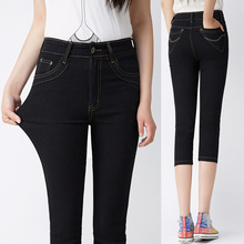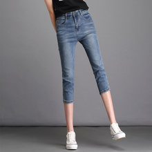 薄款弹力七分牛仔裤女夏高腰修身显瘦七分裤铅笔裤大码小脚裤女裤