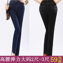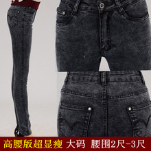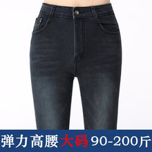 大码女装秋冬高腰牛仔裤女弹力小脚裤韩版潮胖mm显瘦棉弹女裤长裤
