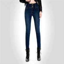 新款弹力大码修身款高腰收腹牛仔裤女长裤春秋裤子韩范潮女小脚裤
