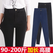 韩版高腰黑色加长牛仔裤女紧身小脚裤胖mm显瘦大码长裤高个子裤子
