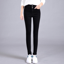 韩版高腰牛仔裤女秋冬长裤黑色铅笔裤大码胖mm修身显瘦小脚裤