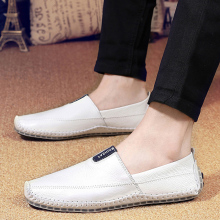 夏季休闲软皮皮鞋韩版潮流白色豆豆鞋男真皮软底一脚蹬开车懒人鞋