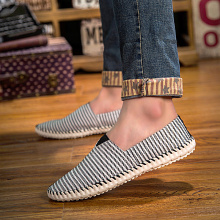 学生韩版帆布鞋 亚麻休闲透气鞋 懒人一脚蹬 男士布鞋夏季鞋子
