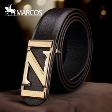 马诃士 字母皮带男真皮青年自动扣休闲腰带男商务时尚百搭裤带