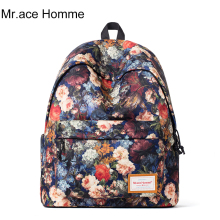 Mr.Ace Homme清新印花双肩包女复古背包学院风高中学生书包韩版男