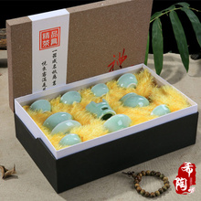 龙泉青瓷鲤鱼茶具套装 日式茶具盖碗茶壶 整套礼盒装功夫茶具带鱼