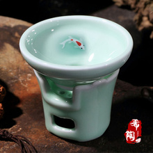 青瓷茶漏茶叶过滤器 红茶泡茶工具茶滤网漏斗 陶瓷摆件茶宠茶配件