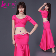 BUW肚皮舞练功服套装七分袖练习服演出表演服显瘦两件套秋冬新款
