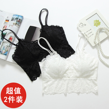 2件蕾丝打底短款吊带小背心女防走光带胸垫裹胸抹胸内衣文胸学生