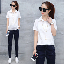 2017夏季新款短袖修身显瘦项链气质衬衫女装显瘦衬衣夏天透气上衣