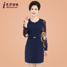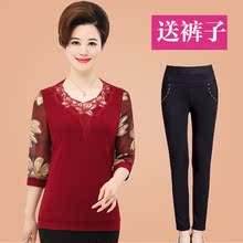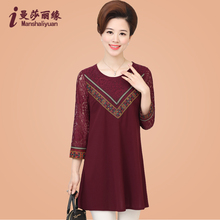 妈妈装春装蕾丝连衣裙中长款中老年女装长袖T恤40-50岁中年人上衣