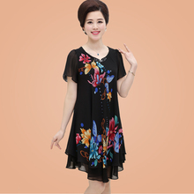 妈妈装夏装连衣裙显瘦中老年女装雪纺衫裙子薄40-50岁中年短袖T恤