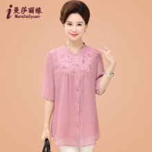 妈妈装夏装短袖T恤雪纺衫宽松中老年女装大码衬衫40-50岁中年上衣
