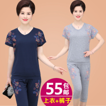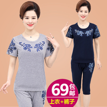 妈妈装夏装套装大码纯棉短袖中老年女装休闲两件套40-50岁运动服