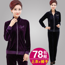妈妈装春装金丝绒套装中老年女装长袖两件套40-50中年休闲运动服
