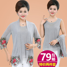 妈妈装夏装蕾丝两件套雪纺衫中老年女装宽松短袖T恤40-50中年上衣