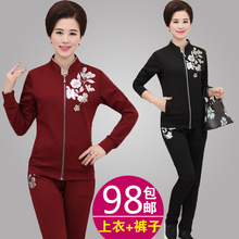 妈妈装秋装长袖套装大码宽松外套中老年女装两件套40-50岁运动服