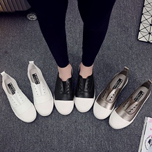 2016春秋季新款黑白色复古英伦风平底舒适板鞋女鞋做旧软底休闲鞋