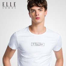 ELLEHOMME男装短袖T恤男 夏季新款男士时尚修身圆领棉印花T恤衫