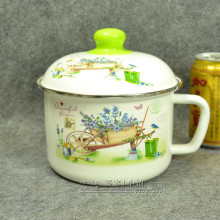 16CM搪瓷带盖大号老式茶缸 卡通水杯保鲜碗快餐杯煮面锅 送保鲜盖