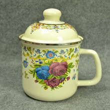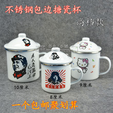包邮加厚老式搪瓷带盖13cm大号复古怀旧铁茶缸子10CM有盖搪瓷水杯