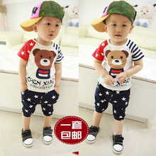 宝宝衣服韩版潮春夏装宝宝纯棉婴幼儿童短袖套装男童1-2-3-4周岁