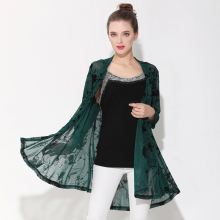 春夏新款欧根纱女装蕾丝开衫女中长款薄外套韩版长袖防晒衣女披肩