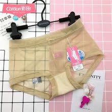 新款彩田超薄内裤女 性感细网纱全透明诱惑银离子抗菌底裆平角裤