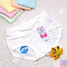 彩田内裤女士中腰/高腰竹炭纤维超细网纱提花性感蕾丝边女平角裤