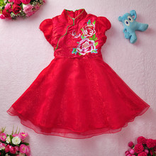儿童唐装旗袍 女童装公主连衣裙子 宝宝生日晚礼服 2017新款夏装