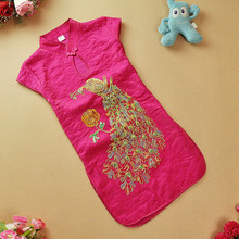 多款夏季儿童旗袍 可爱水滴领孔雀亮片女童唐装 演出服礼服裙